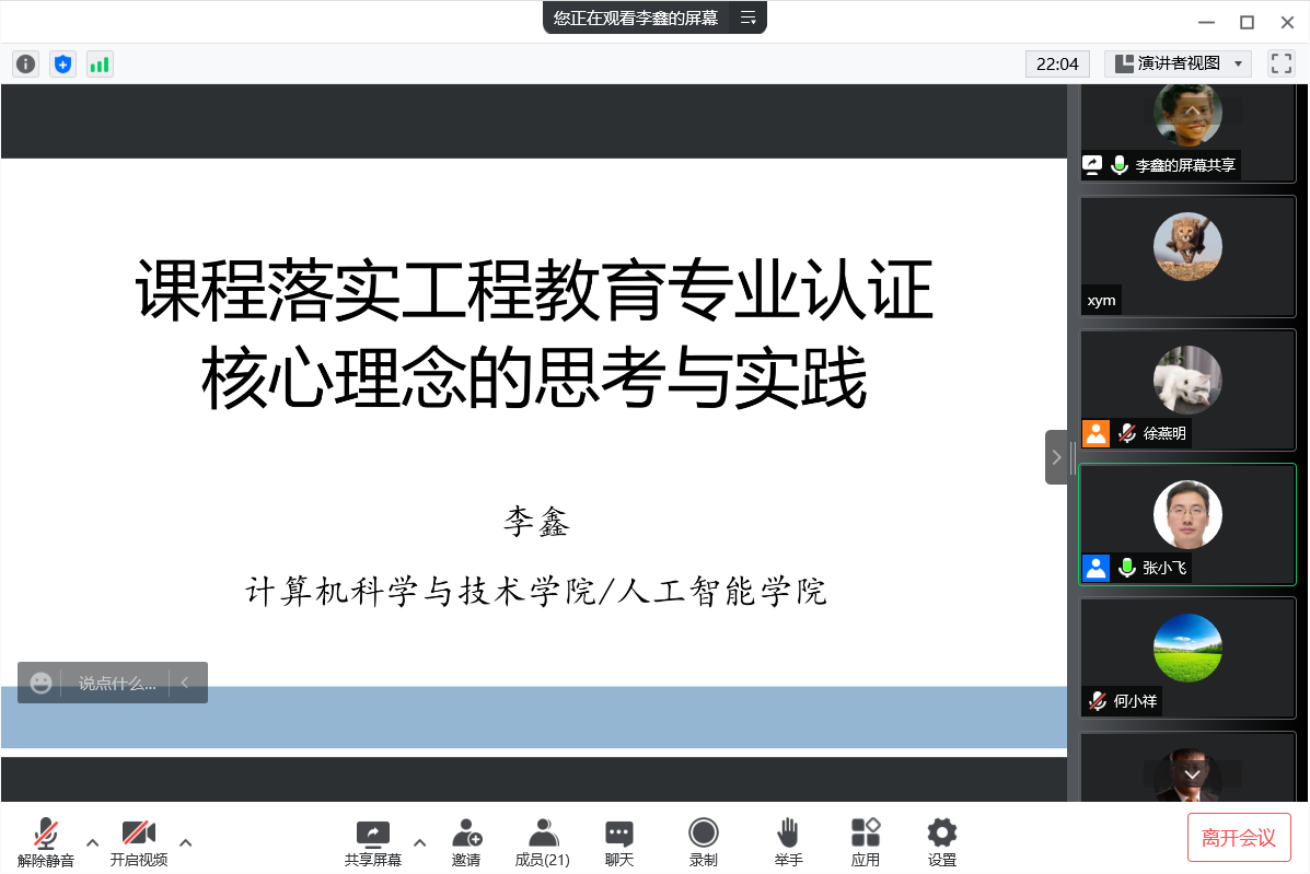 张小飞对李鑫的分享表示衷心的感谢,此次报告使教师们进一步明确了专业认证的重要性、必要性及操作原则。他提出,教学改革永远在路上,学院一直有序推进认证工作,期望能以专业认证为契机,逐步深化教学改革,支撑专业建设,实现人才培养质量的提升。