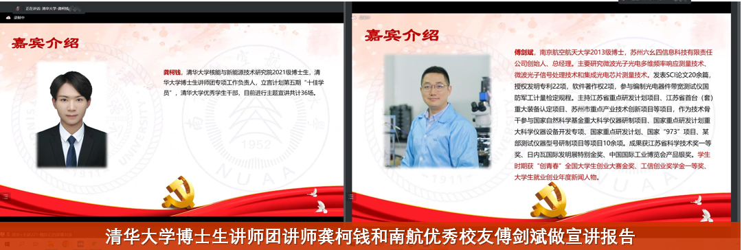 最后,潘时龙教授做了总结发言。他说,清华大学着力培养“又红又专”的科技人才,南航具有“红色基因、蓝色梦想”,两者目标一致而各具特色,开展联合共建十分必要,此前南航微波光子学实验室研究生党支部与清华大学“马兰花开”党支部、清华大学信息光电子研究所研究生党支部开展共建,都取得了良好的成效。他指出,习近平总书记高度重视青年人才的成长,在党的十九大和二十大报告中都用专门段落对青年人提出期望,双方支部要以此次支部共建为契机加强交流、增进了解、促进合作,争取在建设中国特色社会主义现代化强国中贡献中坚力量。