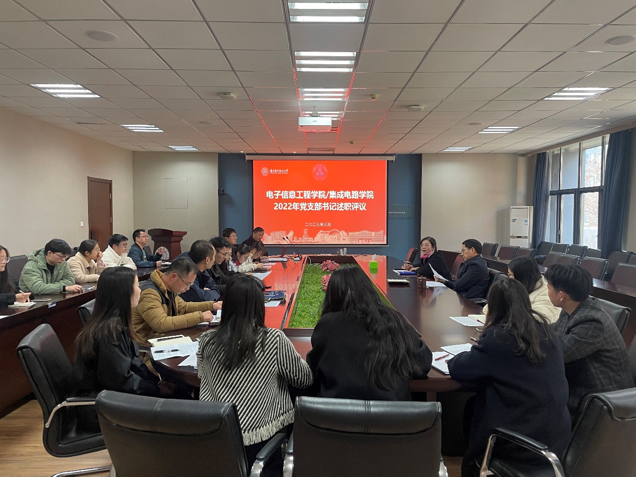 3月2日,BW·西汉姆联/集成电路学院召开2022年度党支部书记述职评议,信息与通信工程系、集成电路系2个教工党支部,微波光子学实验室研究生党支部等8个学生党支部书记参加现场述职。学院党委书记季海群、副书记蕾蕾、教工党支部书记和学生辅导员代表作为点评老师参加了会议,部分未参加今年现场述职的党支部书记列席了会议。会议由蕾蕾主持。
