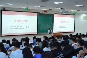 第十三届“良师益友—我最喜爱的导师”获奖者黎宁作为导师代表进行发言,她从培养自信乐观的品格、塑造认真踏实的学风、养成自觉上进的习惯、培育立志报国的情怀四方面为全体新生送上了建议,并祝愿同学们在研究生阶段学有所获、学有所长。硕士研究生鲍禹桥作为新生代表发言,他对学院在本科学习及西部支教期间的关心与帮助表示感谢,并表达了对即将开启的研究生生活的憧憬与期待。