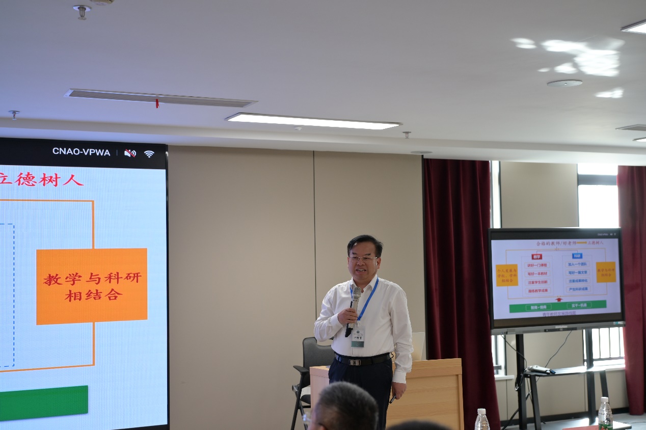 王成华教授针对高校新入职的青年教师,从教学和科研两方面提出了青年教师发展的路线图。以“电子线路”课程建设为例,阐述了课程教学改革、课程资源建设、教材建设;以国家级实验教学示范中心、国家级教学团队、国家一流课程和国家规划教材为基础,提出了“三维一体”的电子线路课程教学模式;从选题、改革、积累与创新等方面,以获得的国家级教学成果奖为例,阐述教学成果奖的培育与申报。王成华教授用幽默风趣的语言为参会的各位老师提供了一场生动的现场教学示范,指明了电子信息方向青年教师在科研及教学方向的成长路径,报告引发了现场参会老师的热烈反响。