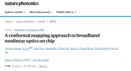 近日,我校微波光子技术国家级重点实验室罗宇教授联合南京大学物理学院刘辉教授课题组,在国际光子学顶刊《Nature Photonics》上发表题为“A conformal mapping approach to broadband nonlinear optics on chip”的学术论文。该论文提出了基于变换光学的通用策略,通过设计具有空间梯度曲率的弯曲加速波导,实现了片上宽带非线性频率转换。实验室罗宇教授和南京大学刘辉教授为共同通讯作者。