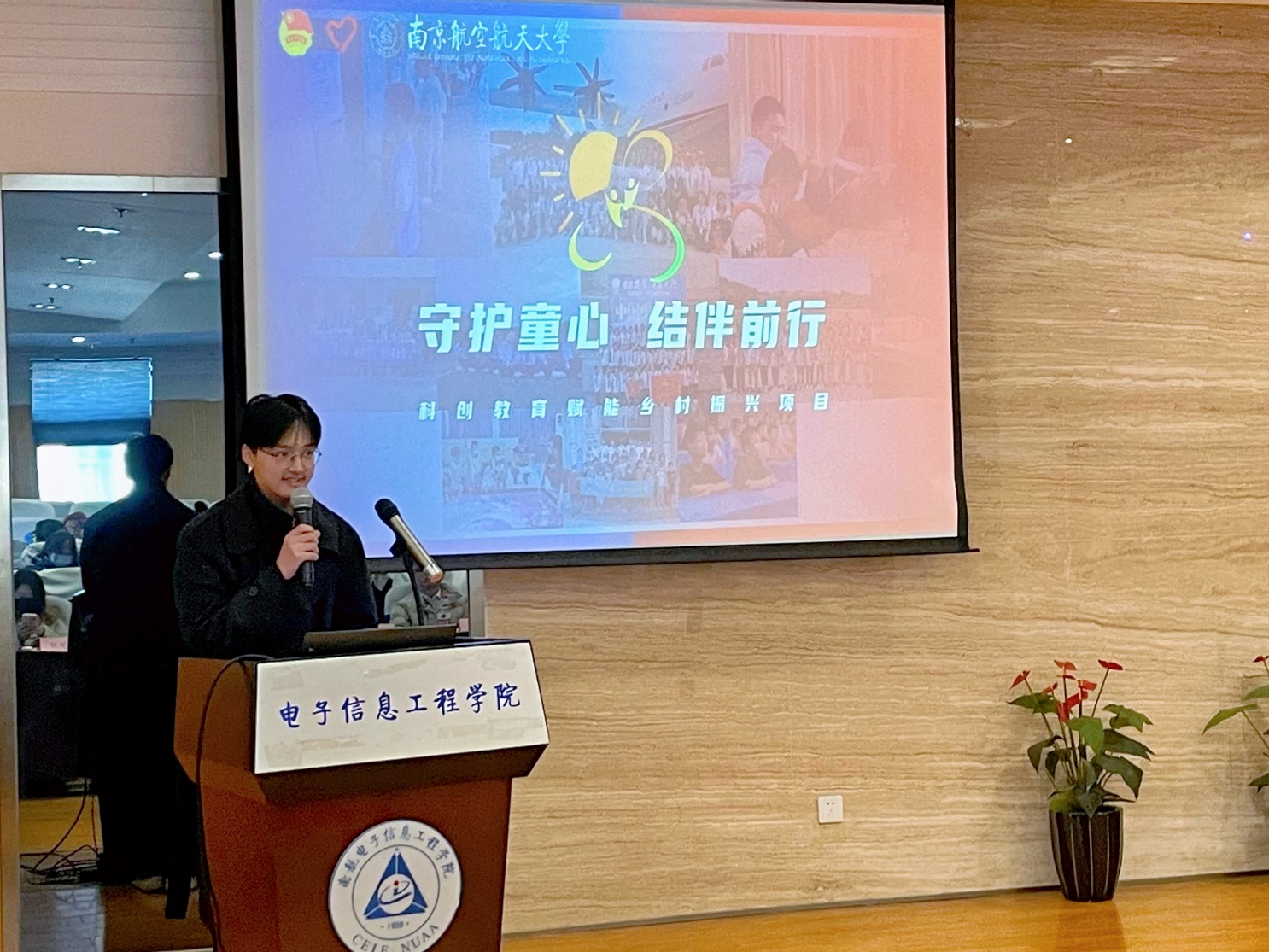 活动期间,南航校级长期立项团队“守护童心 结伴前行”第四任负责人周鑫做成果分享及未来工作展望。后续,团队将在南航校友会电子信息行业分会等单位的指导下,联合南大、南邮等兄弟高校团队,努力每月开展1~2场“研学相伴”类活动,并致力将“助学陪伴、书信结伴”公益推广到100所中小学校。