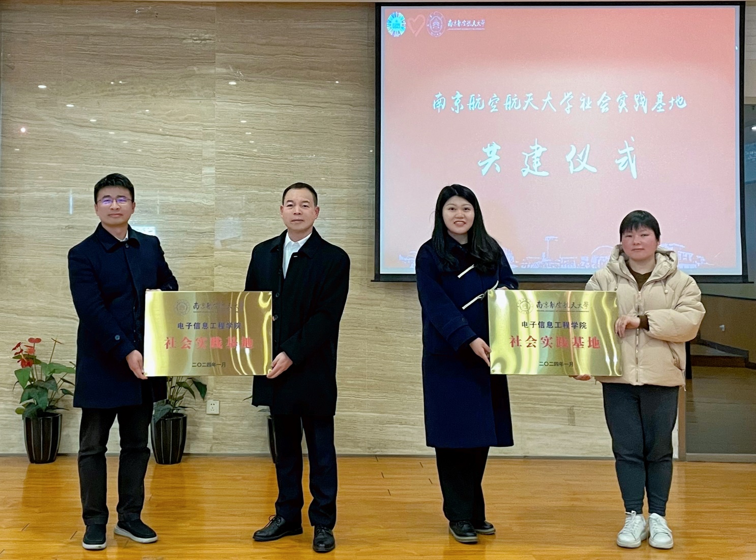 活动中,南航校友会电子信息行业分会副会长沈耀伟、南京科技馆副馆长孙强、南航BW·西汉姆联团委书记席维唯、南京南站区域党建联盟360党委书记司马煜共同为社会实践基地揭牌。