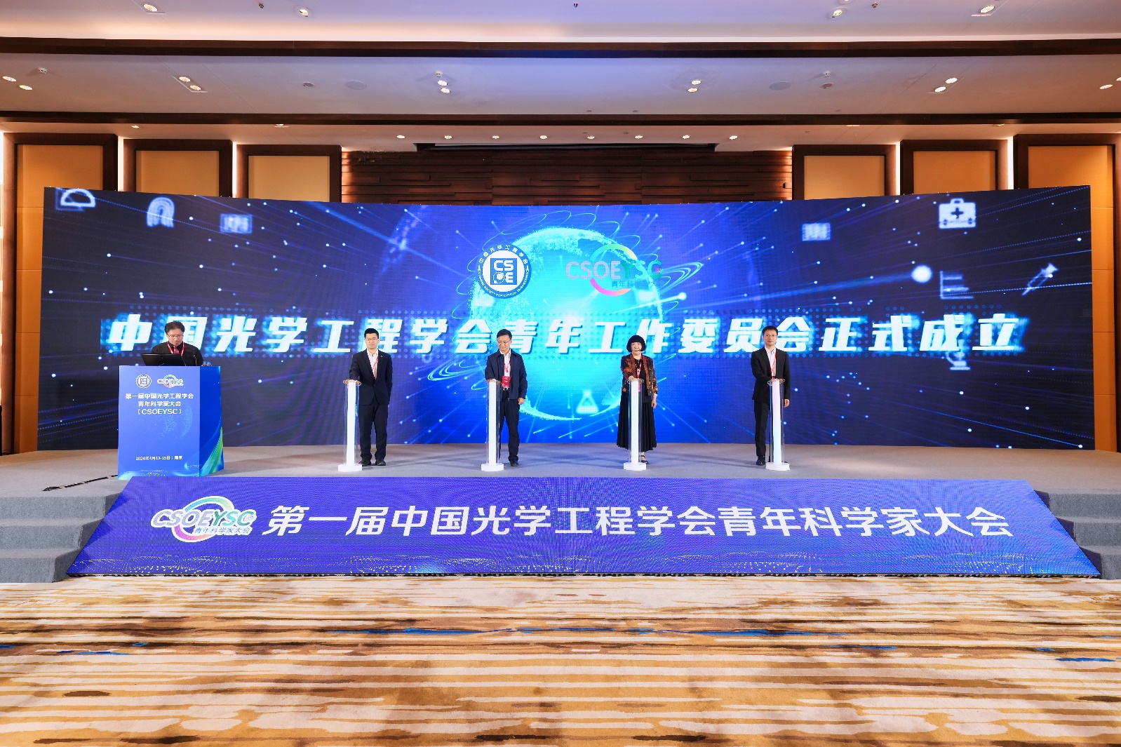 为进一步发挥中国光学工程学会科技人才服务平台的作用,不断提高人才自主培养能力和质量,“中国光学工程学会青年工作委员会”正式成立,由中国工程院吕跃广院士,中国光学工程学会赵雪燕秘书长,中国光学工程学会青年工作委员会主任委员、我校潘时龙教授,中国光学工程学会青年工作委员会主任委员、中国科学技术大学陆朝阳教授上台共同启动。