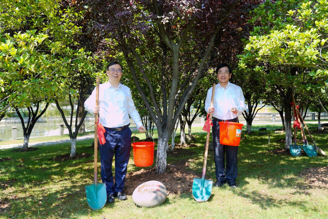 报告会前,黄维院士与师生代表共同在砚湖边院士林植树。