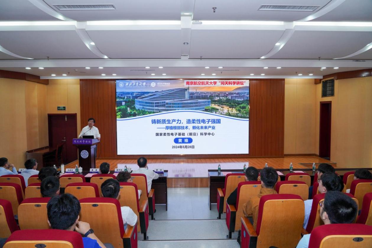 5月28日,我校在将军路校区图书馆一楼报告厅举办第240期问天科学讲坛。中国科学院院士黄维为师生讲授题为《铸新质生产力,造柔性电子强国——厚植根部技术,孵化未来产业》的报告。