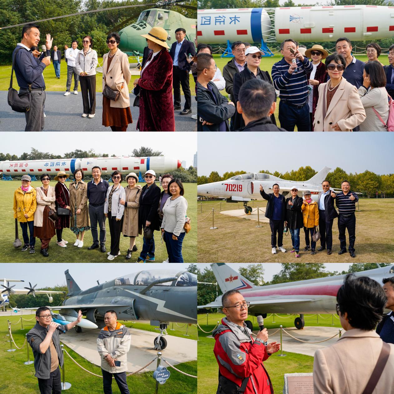 随后,校友们漫步御风园,看着一架架熟悉的飞机,校友们激动地接过讲解员的话筒,讲述着自己参与其中的故事,从设计初稿到试飞成功,再到为国家建设贡献力量的点点滴滴。最终,在校友们的提议下,大家纷纷与自己参与建设的飞机合影,镜头定格的瞬间,记录了南航人的智慧、汗水与梦想,以及那份对国家、对航空事业深沉而持久的爱。