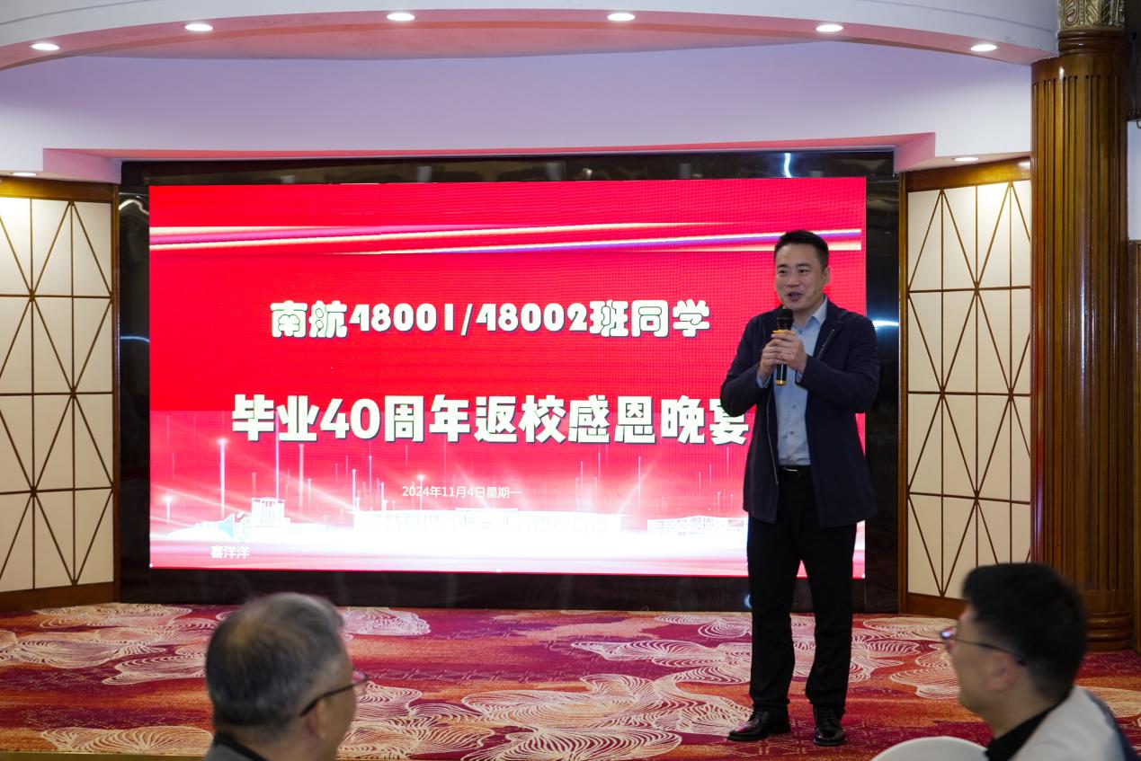 感恩晚宴上,校友们欢聚一堂。南航发展联络部部长、校友总会秘书长李和新代表学校向480级校友致以最诚挚的欢迎和感谢,表示学校的发展壮大离不开校友们的大力支持,学校将继续加强与校友的联络和服务工作,期待与所有校友一同为学校高质量发展贡献力量。