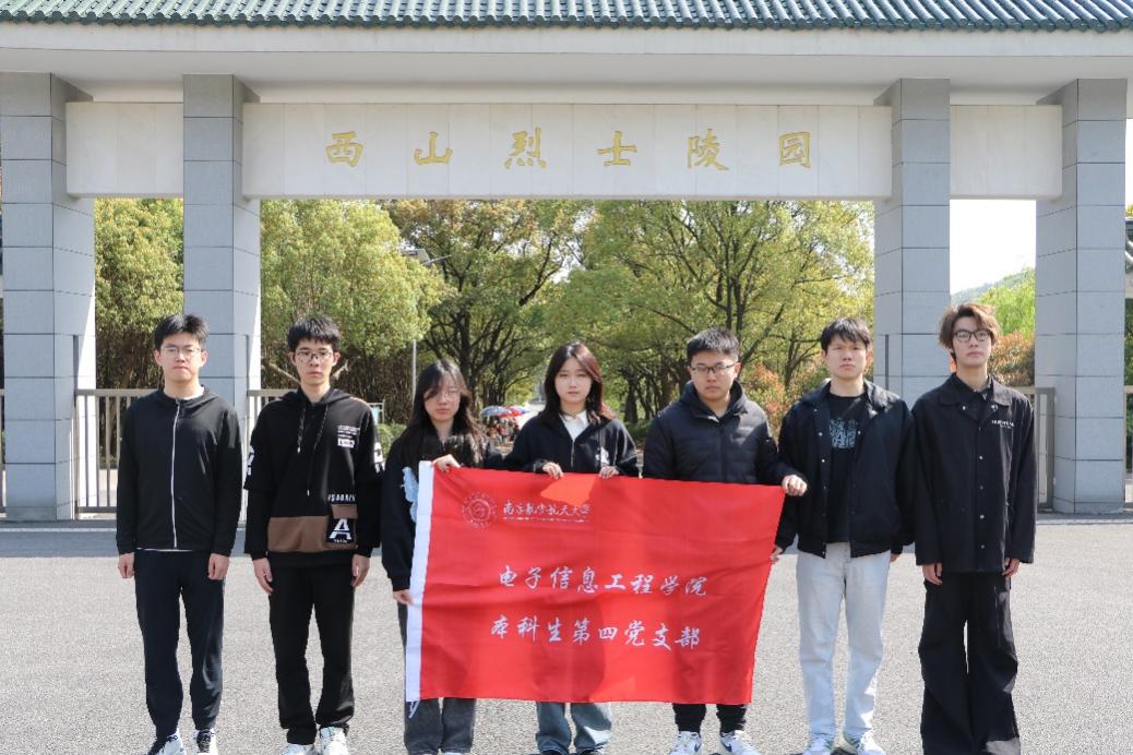 在庄严肃穆的革命烈士纪念碑前,党员同志们缓步上前,将寄托哀思的菊花摆放在碑座周围。支部党员集体瞻仰烈士墓区,驻足阅读镌刻着烈士生平事迹的碑文。当看到多位烈士牺牲时年仅二十余岁,与在场学生年龄相仿时,预备党员张成昊感慨道:“正是这些年轻的生命以他们的热血,铸就了我们民族的脊梁,作为同龄人,我们更应传承这份精神火炬,在科技报国的赛道上跑出当代青年的最好成绩。”