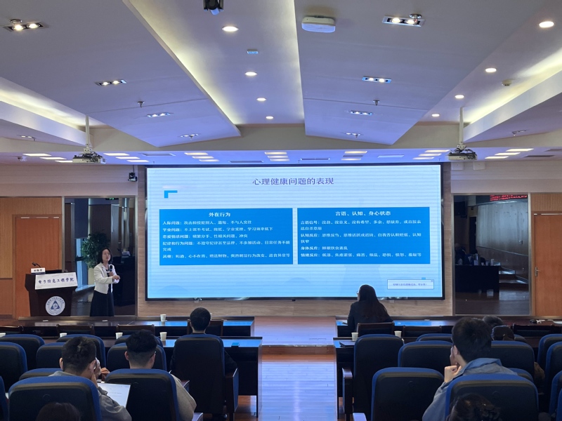 为全面落实学校学生工作会议决策部署和我校第十四期研究生“谈心谈话关爱月”专项工作通知要求,帮助研究生导师更好地分析学生心理普测数据,提升谈心谈话工作技巧,4月14日下午,学院邀请河海大学心理健康教育中心主任刘取芝教授赴学院开展研究生导师心理专题培训。学院全体研究生导师及专兼职辅导员参加本次培训,培训由学院党委副书记王宇宁主持。