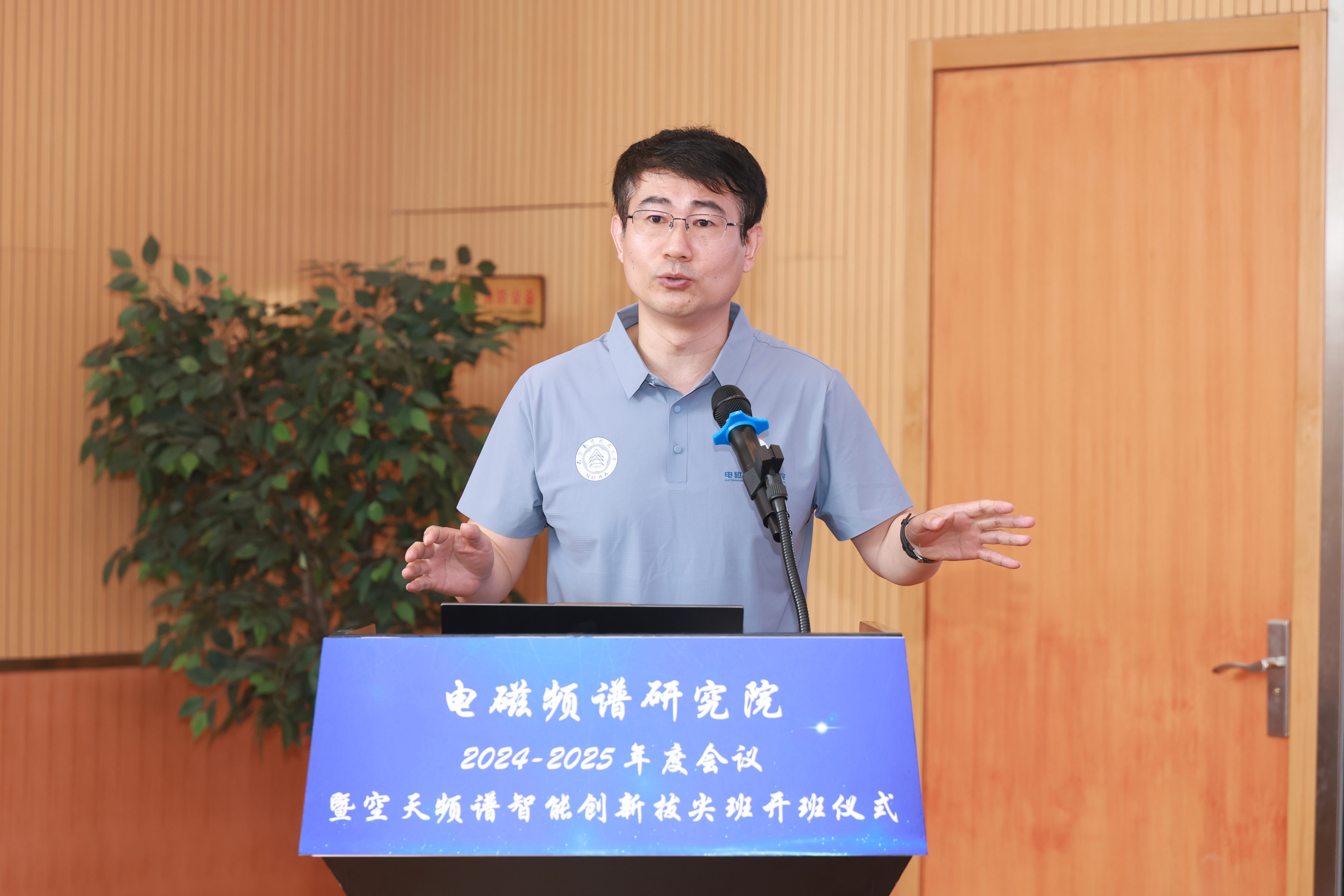 面向发展新质生产力和实现高水平科技自立自强的时代要求,着力提升电磁频谱领域核心竞争力,2025年6月29日,电磁频谱研究院召开2024-2025年度会议。西汉姆联副校长吴启晖教授、新加坡院士马凯光教授、江苏省工信厅无线电管理局金雷局长、江苏省无线电监测站孙佩珂副站长、研究院战略指导组专家田畅教授与张磊教授、研究院副院长张小飞教授与董超教授,研究院各创新中心与研发中心主任、研究院教师、研究生与科研岗人员以及空天频谱智能创新班首批学生共同参加了此次会议。会议由天地一体频谱认知智能实验室研究生党支部书记徐睿主持。