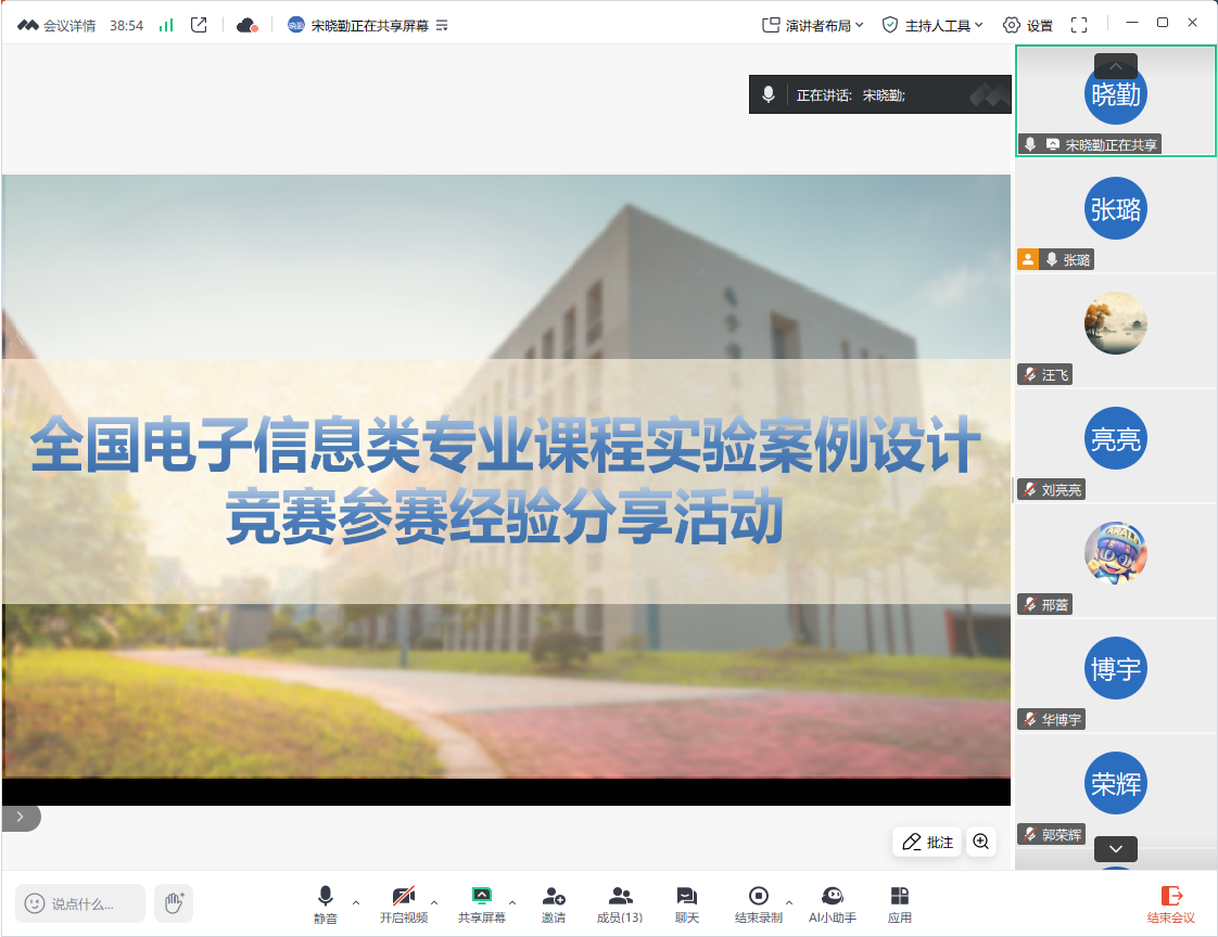 9月5日晚,我院通过腾讯会议开展电子信息类专业课程实验教学案例设计竞赛经验分享活动。活动由副院长张小飞主持,华博宇、宋晓勤两位教师分别分享参赛经验,助力学院持续提升竞赛成绩。
