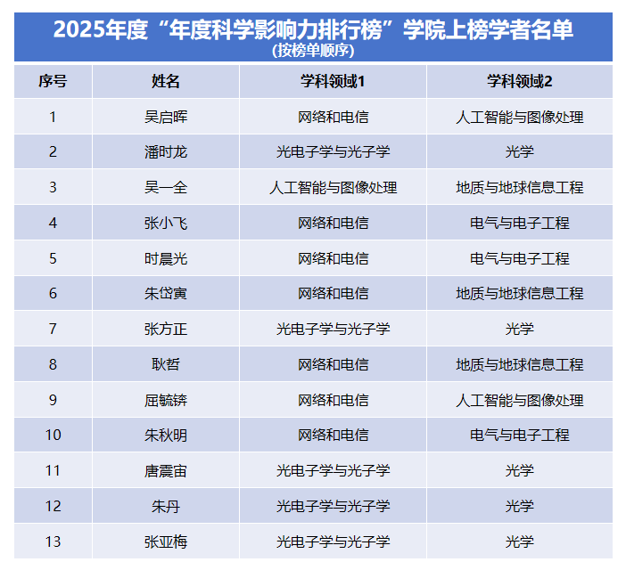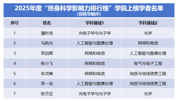 在该榜单的“终身科学影响力排行榜”中,BW·西汉姆联共有7位教师荣登榜单;在“2025年度科学影响力排行榜”中,学院亦有13位教师入选。本次入选,标志着学院在网络和电信、光电子学与光子学、人工智能与图像处理、电气与电子工程等交叉学科方向上的科研实力与学术影响力持续增强,也反映了学院在高水平人才队伍建设方面取得的显著成效。