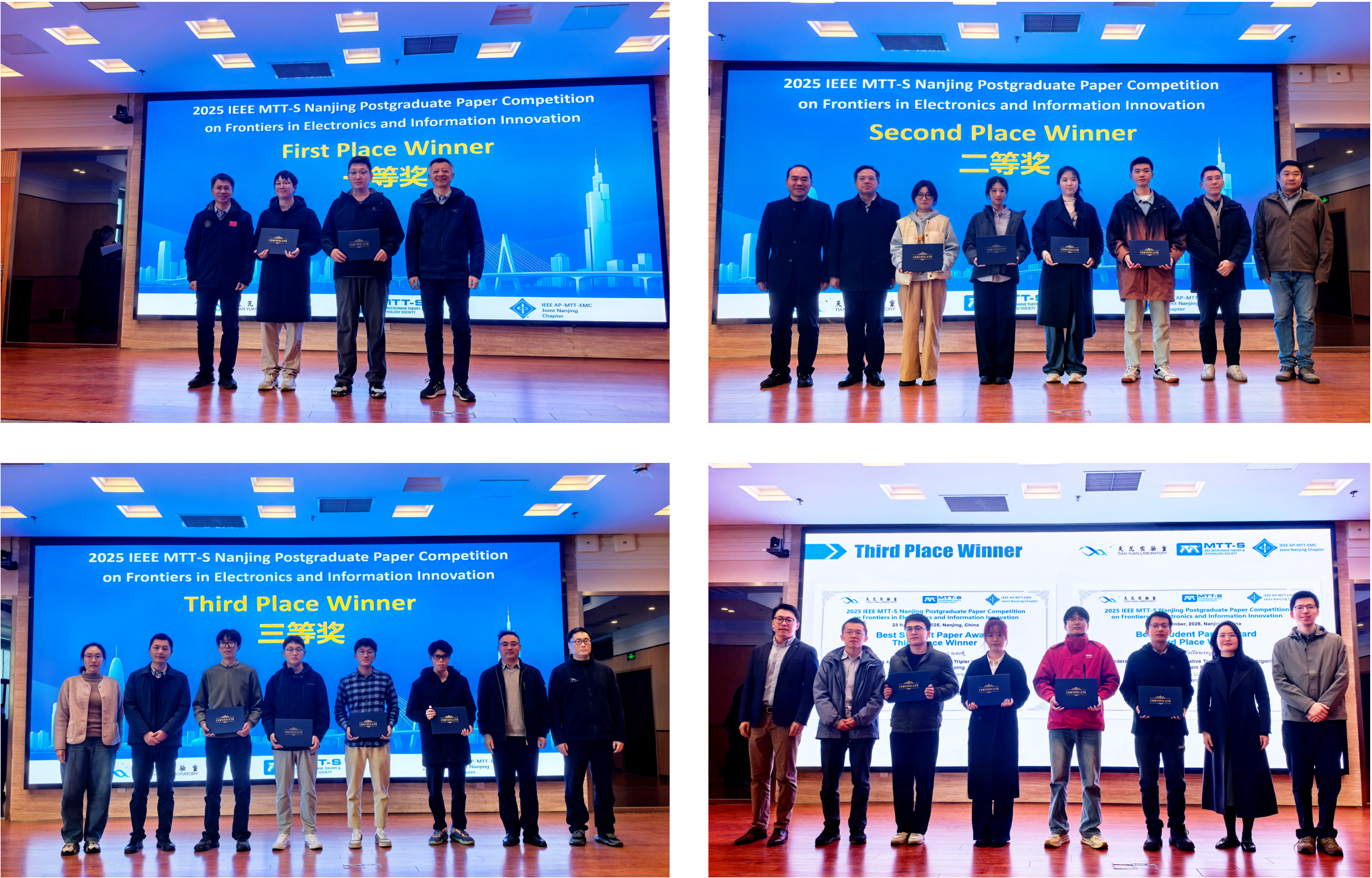 2025年11月23日,微波光子技术国家级重点实验室联合IEEE AP-MTT-EMC南京分会成功举办了2025年IEEE MTT-S南京地区“电子与信息创新前沿”研究生论文竞赛。该竞赛由IEEE 微波理论与技术学会(MTT-S)资助,吸引了来自南京及周边地区多所高校的专家、学者们与研究生们,共同参与了这场面向电子与信息领域前沿研究的高水平学术交流活动。